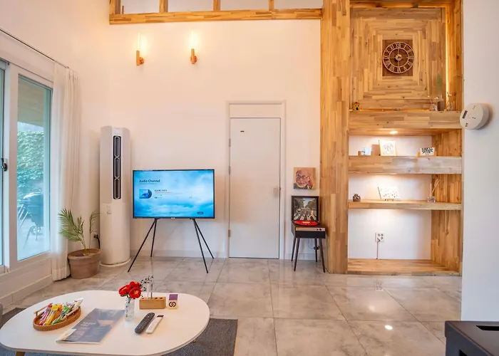 Jeju International airport can be reached within 46 minutes drive, and natural attractions like Banglim-Won are 4.6 km away. Ahop-gut Maeul Experience Yard is nestled nearly 25 minutes' walk from Jeju Love Stay Pink villa, and the bonsai park "Spirited Garden" is approximately a 15-minute ride away. The accommodation is 3.5 km from a top family-friendly place such as Raon Zoo.
